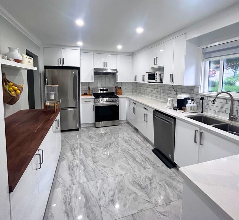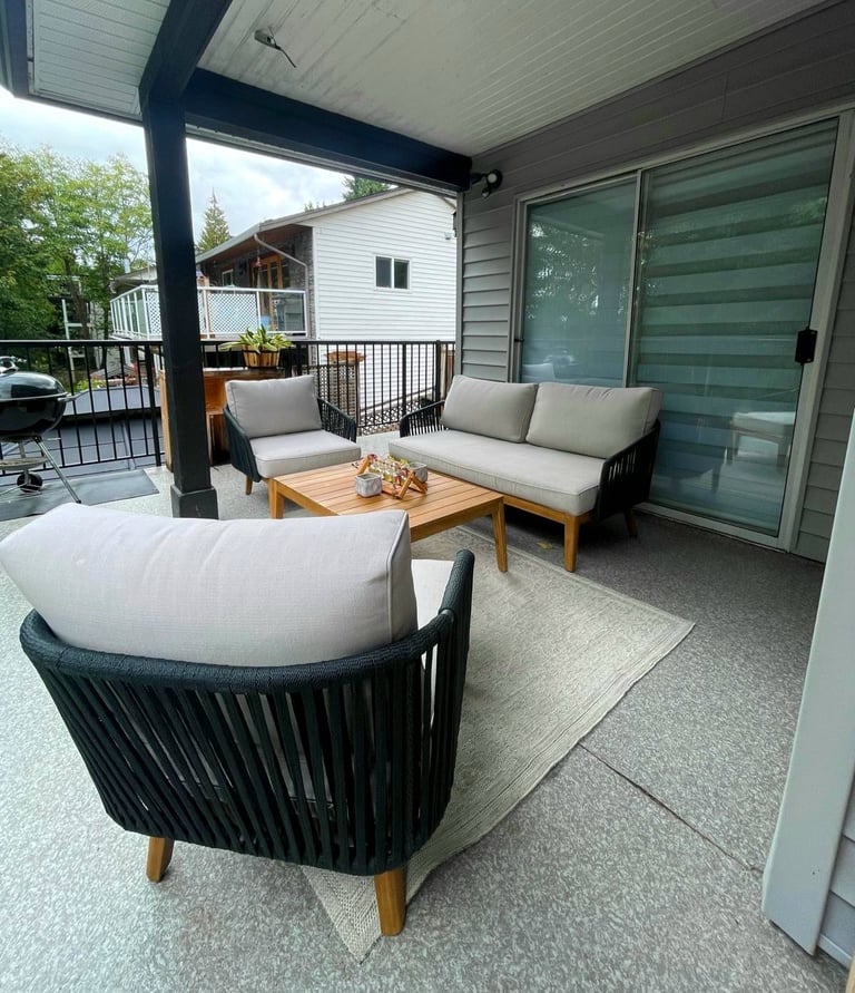 This spacious furnished home in North Delta offers comfort, functionality, and thoughtful details throughout. The bright open living room features a cozy gas fireplace and modern LED pot lighting, creating a warm and welcoming atmosphere. A fully equipped kitchen comes complete with a double fridge/freezer, gas stove, range, and dishwasher, while the adjoining dining area provides plenty of space for family meals or entertaining.